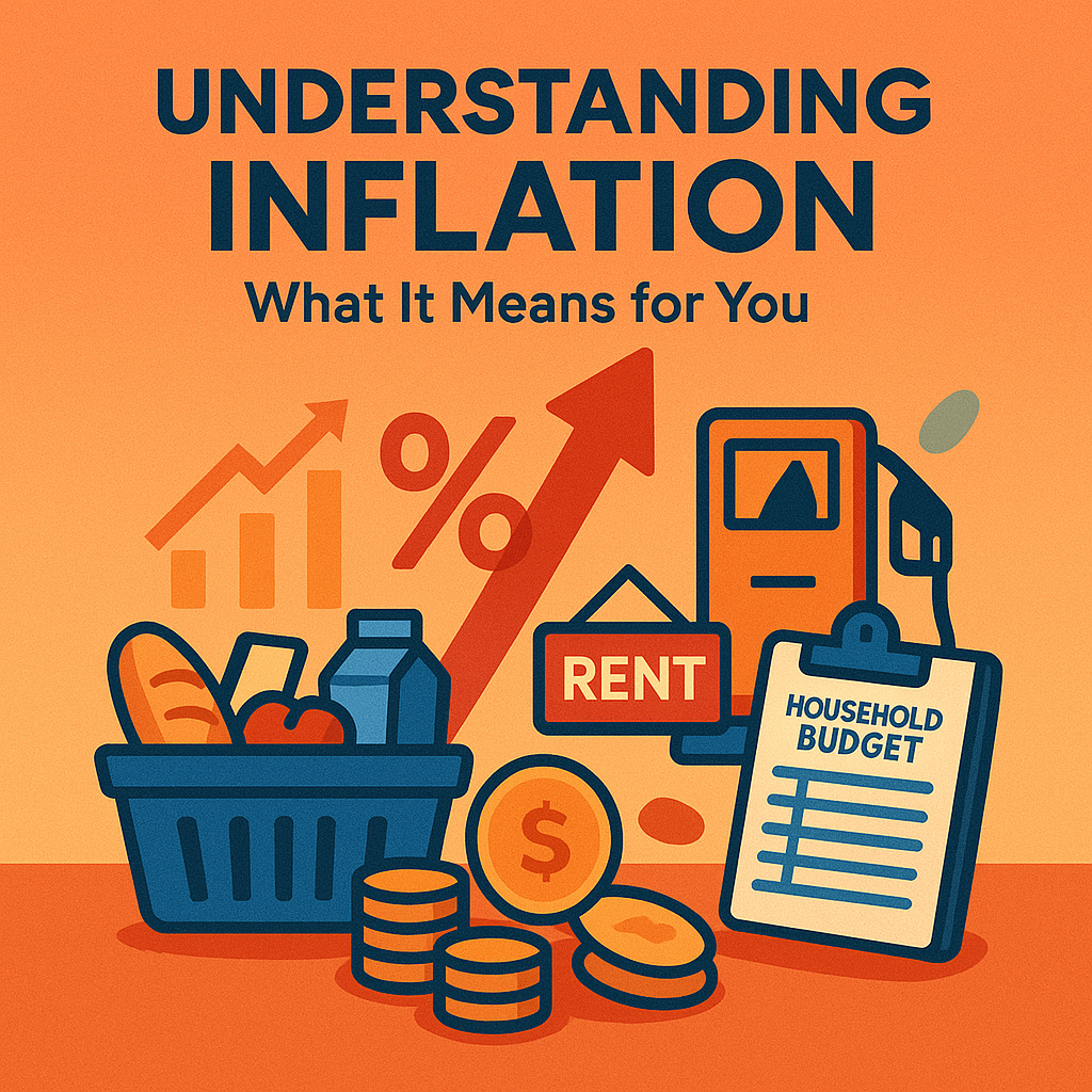Let’s say that your monthly grocery bill was $200 last year, and now your monthly grocery bill is $220, that is inflation at play. Inflation is part of our everyday economic life. If inflation gets too high or unpredictable, it results in financial stress for households.